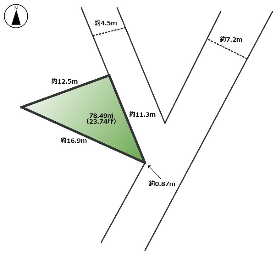 | 接道詳細 | 東4.5m公道に11.3m接道 南7.2m公道に0.8m接道 | ||